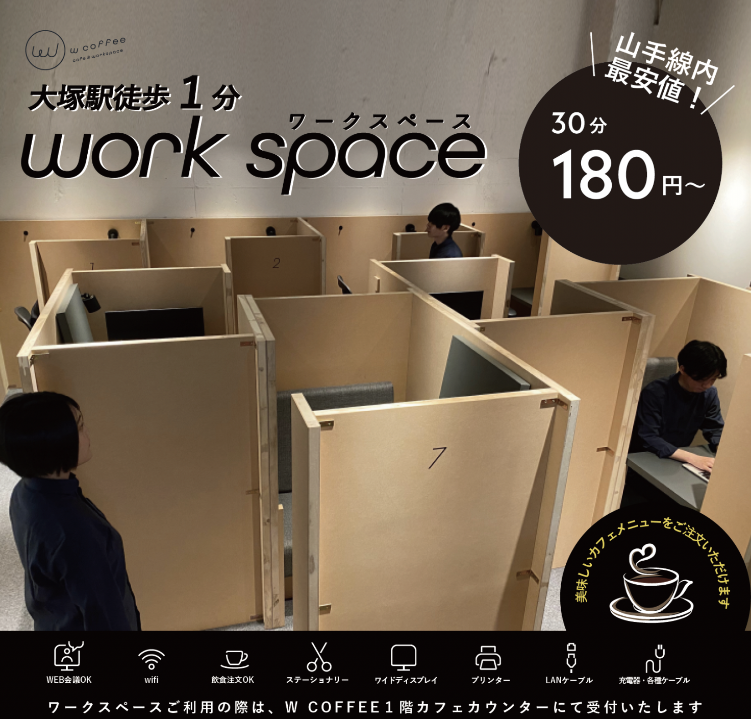 今年7月31日OPEN!セルフカフェ大塚南口店は完全無人カフェで、おしゃれで落ち着いた空間が魅力です。 高速Wi-Fi、全席電源完備で、試験・資格勉強やリモートワーク、長時間の集中作業に最適。 リーズナブルな価格帯(サブスクプランもあり、1杯あたり最安147円で購入可能)で利用ができ、 時間を気にせず、勉強や仕事、休憩リラックスしたい方にお勧めのカフェです。 ・Wi-Fi/電源:完備(高速・接続制限なし) ・利用スタイル:時間制(ドリンク購入で利用可・時間無制限) ・特徴:完全無人・キャッシュレス・明るく清潔な空間 ・おすすめポイント:早朝6時から夜間の24時まで時間帯を気にせず、勉強・作業できるのが魅力。