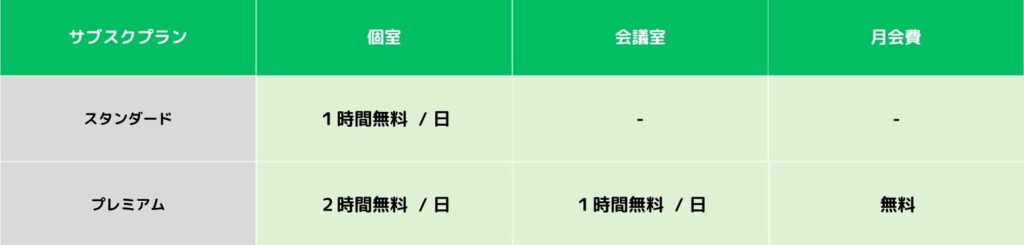 またプレミアム会員は1日1時間会議室も無料で利用可能です。サブスク登録後、専用の予約リンクを送付しますのでそちらからご予約ください。